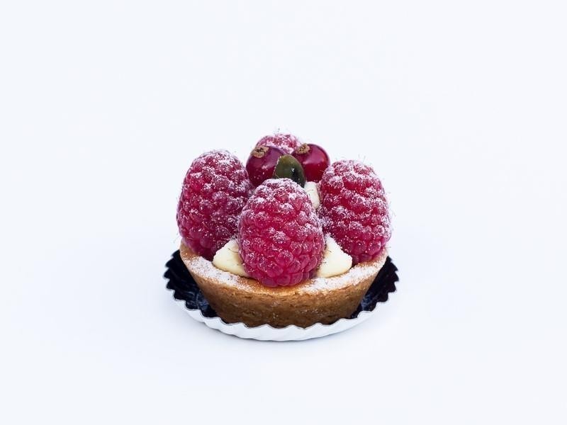 Harde wener bakje gevuld met amandelspijs en zwitserse room. Afgegarneerd met verse frambozen.