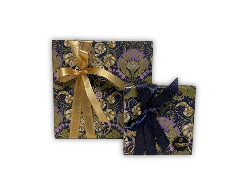 Gevuld met onze huisgemaakte bonbons (melk en puur) Let op: er kan een blauw of goud lint omheen zitten.