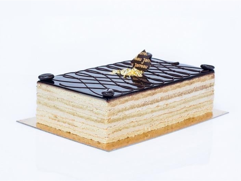 Laagjes amandelbeslag gevuld met een koffie-Kahlua crème.